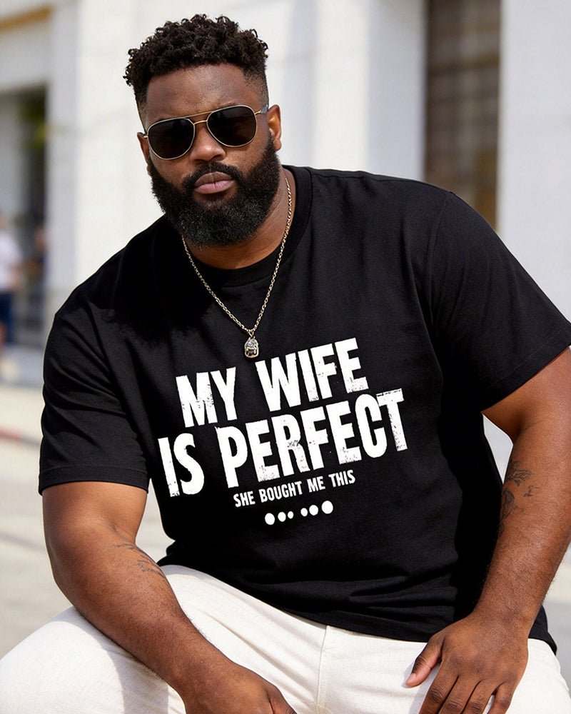 Big & Tall Men's "MY WIFE IS PERFECT" Bracket Fun Printed Round Neck Short Sleeve T-Shirt